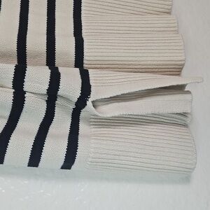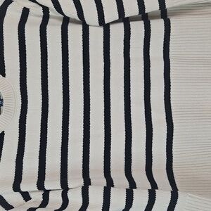 Cozy meets chic 🤍🖤 with this GAP striped knit sweater. Classic black and cream stripes, crew neck, and ribbed hem/cuffs for a timeless style. Perfect for layering with jeans, skirts, or over a dress. A versatile piece that never goes out of style! ✨