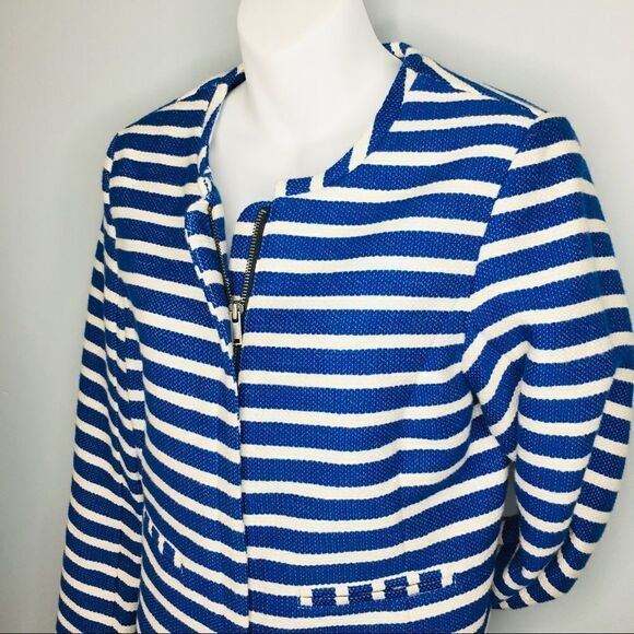 Gap Striped Full Zip Lined Blazer Swing BB Jacket Woven Modern Casual Career Tweed Campus Blue White Size. Condition is "New with tags". Please preview all Pictures for Condition and/or measurements. If you have any questions please ask prior the purchase. Your Order will be shipped with care.