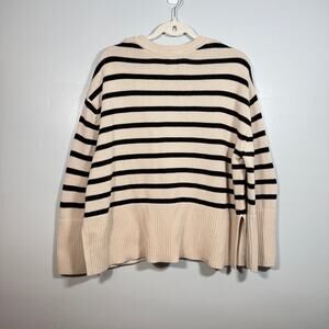 GAP Striped Crewneck Sweater Black Cream Pullover Cotton Fall Knit L Minimalist