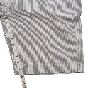 These GAP shorts showcase a sleek flat front design in a stylish blue and white striped color scheme, ideal for casual summer outings. The classic straight-leg cut offers a timeless look, while the chino-style fabric provides a subtle texture for added sophistication.