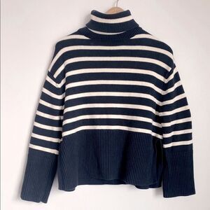 GAP Striped Navy White Cropped Oversized Slouchy Cotton Sweater XXS Nautical New