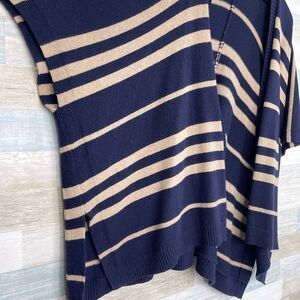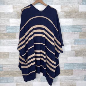 GAP Striped Poncho Cardigan Sweater Navy Blue Tan