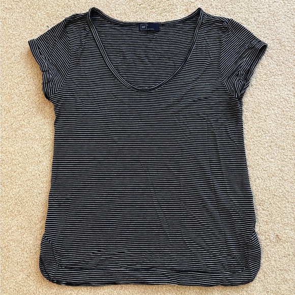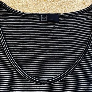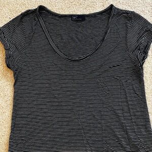 Classic striped tee with short sleeves. Perfect for casual wear. Soft and comfortable fabric. Navy and white small stripes. Make me an offer!