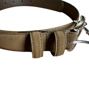 Gap Brown Suede Cow Leather Belt. With a classic solid brown color and a wide 1” width, it is suitable for various occasions, from casual to dressy. Made from high-quality leather with a suede finish, this belt features a nickel buckle and adjustable sizing for a comfortable fit. The equestrian and preppy themes add a touch of sophistication, making it a timeless addition to any wardrobe. Office, business, fall, winter, workwear, men’s gift ideas, Xmas, Christmas gift.