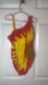 GAP Sunflower One Piece Swimsuit Asymmetrical Design Red Yellow Girls L (10)
