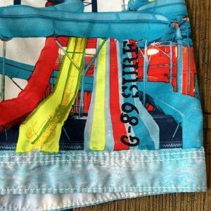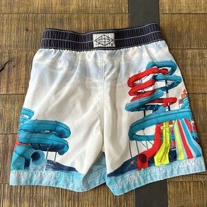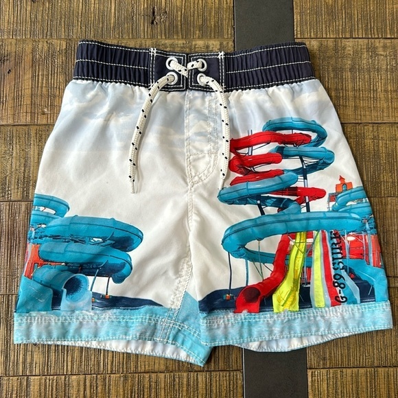GAP Surf Shop Waterslide Elysian Blue White Red Swim Trunks, toddler size 2 years