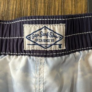 GAP Surf Shop Waterslide Elysian Blue White Red Swim Trunks, toddler size 2