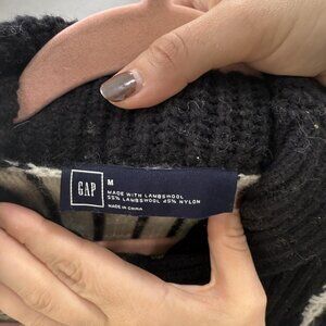GAP Sweater Mens Medium Black Cream Shawl Collar Lambswool Knit Pullover Nordic