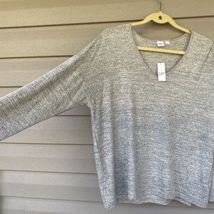GAP Sweater New V Neck Gray Marled Softspun Large Boxy