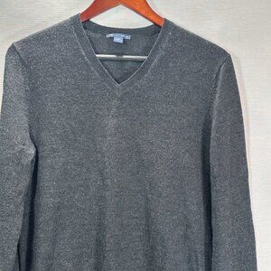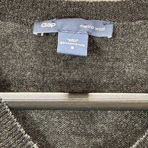 GAP Sweaters Mens Small Charcoal Gray Merino Wool V Neck Ribbed Hem Cuffs