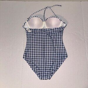 GAP Swimsuit Women's Large Blue White Check Plaid Underwired One Piece Removable Halter NWT.