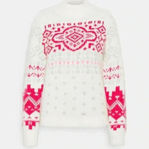 Size M. NWT! Gap tribal patterned alpaca wool blend high neck sweater. Pink, red, gray, and cream/white colors. Reasonable offers welcome!