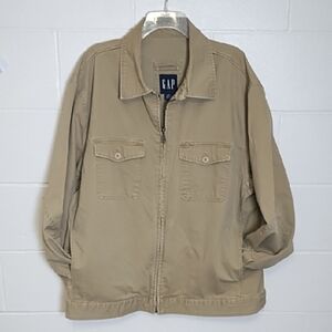 GAP Tan Cotton Canvas Utility Jacket Classic Collar Zip Front