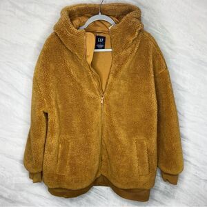 GAP Tan Sherpa Hooded Zip-Up Sweater Large