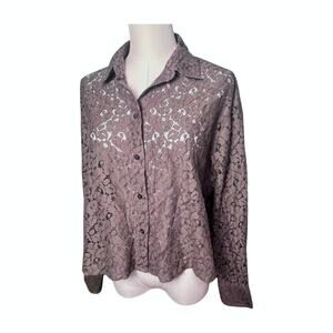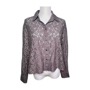GAP Taupe Lace Cropped Button Down Blouse Sheer Y2K Romantic Feminine Coquette
