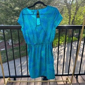 GAP Teal & Blue Palm Print Fit & Flare Summer Dress | Size M