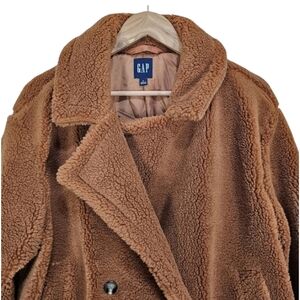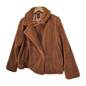 GAP Teddy Jacket Womens Sz Large Brown Sherpa Oversized Warm Cozy Winter