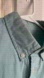 In good used condition, this modern Oxford is a classic button-down in a beautiful sea foam green/blue color. It is 100% cotton. There is some discoloration around the collar, which is shown in the video.