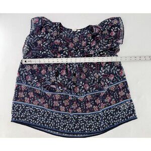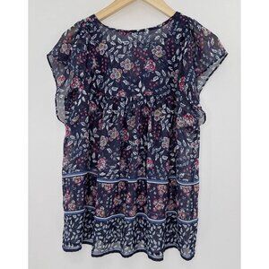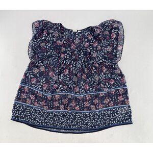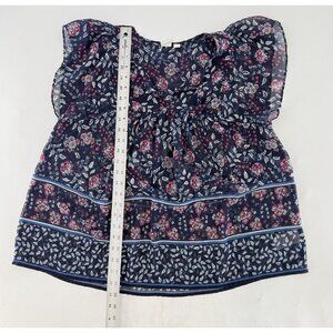 GAP Tie Neck Sheer Chiffon Blue Floral Flutter Sleeve Blouse Sz L Preppy Boho