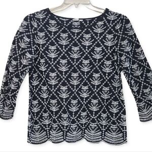 this is a cute top beautiful embroidery black and white scalloped edges excellent condition smoke-free home