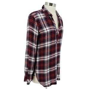 GAP Tunic Top Red Plaid Long Sleeve Collared V Neck Long Shirt