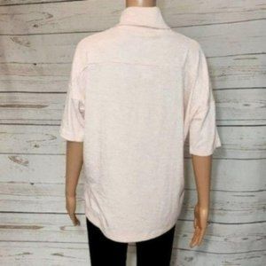 This is a sweater you can live in! Looks great. Feels great. This oversized turtleneck has an easy drop-shoulder design, 3/4 sleeves and a trendy hi-low hem!