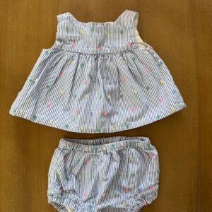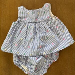 GAP Two Piece Outfit. Blue and white striped with color dotted Swiss fabric