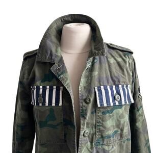 GAP Utility Jacket Womens Sz Small Green Camo Military Field Camouflage Stripes