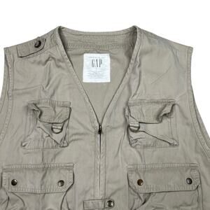 GAP Utility Vest Work Field Jacket Zip Front Snap Pockets Khaki Tan Mens Large