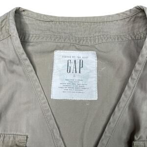 GAP Utility Vest Work Field Jacket Zip Front Snap Pockets Khaki Tan
