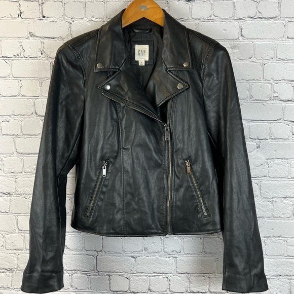 GAP Vegan Leather Biker Moto Jacket, Size S