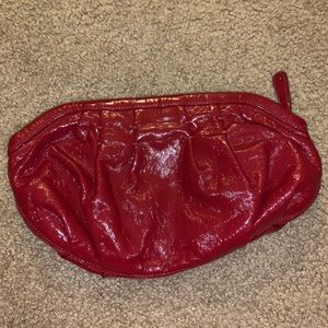 GAP Vegan Patent Leather Red Clutch. Fully lined inside and small zippered pocket.