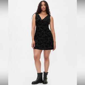 GAP Velvet Floral Mini Dress, Black, Size Large Petite