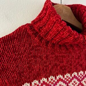 Gap 100% Lambs' Wool Fair Isle Sweater from the 2003 Holiday Collection. Red turtleneck sweater, long sleeves, knit.