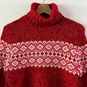 GAP Vintage 100% Lambswool Fair Isle Sweater Red Turtleneck Knit size medium