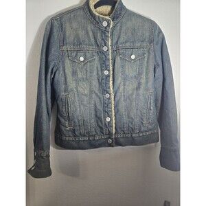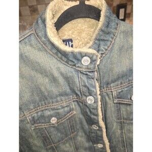 GAP Vintage 2003 Sherpa Lined Denim Jacket Women’s Medium • Band Collar Western
