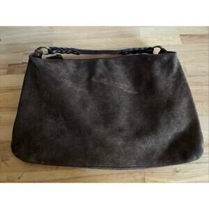 GAP Vintage Chocolate Brown Suede Hobo Shoulder Bag Braided Leather Handle