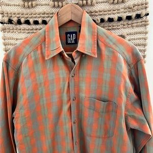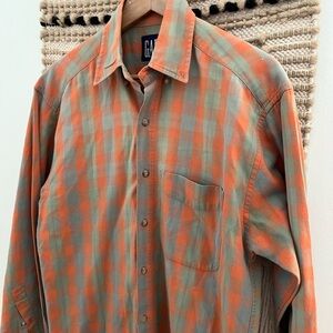 GAP Vintage / Y2K Orange and Green Checkered Shirt