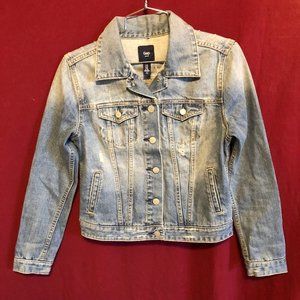 GAP WOMEN'S 1969 CLASS DISTRESSED DENIM JEAN JACKET SIZE EXTRA SMALL XS