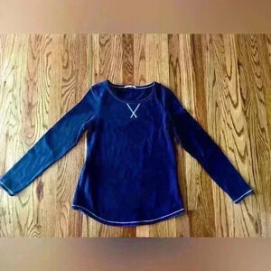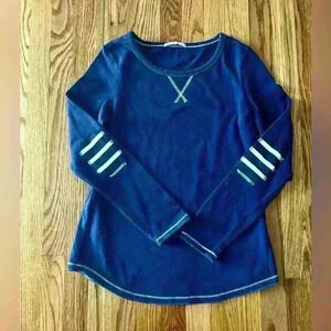 GAP WOMEN’S NAVY TUNIC SWEATER. SMALL. NAVY & WHITE ELBOW PATCH CONTRAST STITCH