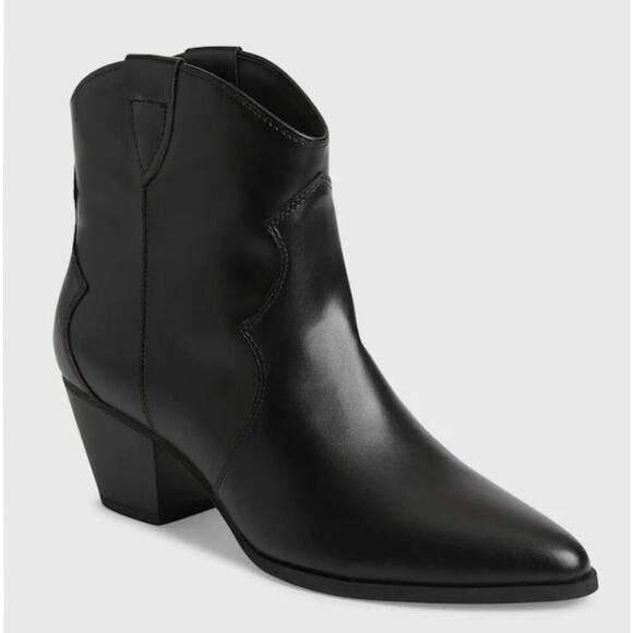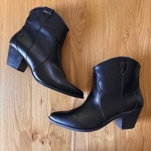 GAP Western Heeled Cowboy Boots Faux Leather in "True Black" Size 9.5