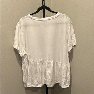 This elegant white blouse from GAP features an asymmetrical ruffled hem that adds a touch of sophistication to its classic design. The short sleeves and soft fabric ensure a comfortable fit, making it a versatile addition to any wardrobe.
