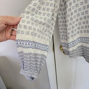 GAP White Blue Print Flowy V Neck Long Sleeve Women's Blouse Casual Size XL