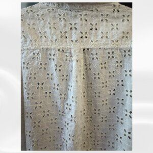 Elevate your year-round wardrobe with this charming GAP eyelet blouse in pristine condition! This feminine short-sleeve button-down features beautiful allover eyelet embroidery with delicate floral cutout details that add texture and visual interest.