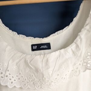 GAP White Eyelet Ruffle Rib Tank - Medium