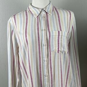 GAP White Multicolored Stripes Linen Blend Collared Buttoned Shirt Size Small