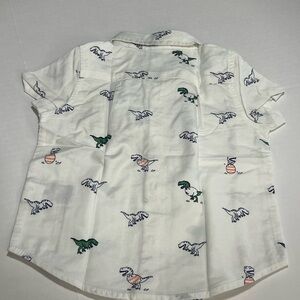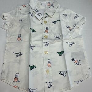 GAP White and Green Button Down Shirt with Dinosaur Print