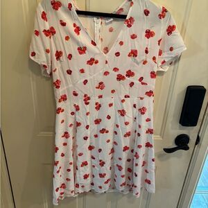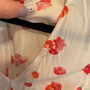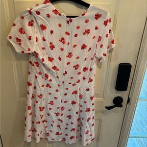 GAP White and Red Flutter Sleeve Mini Dress with Floral Print size 14