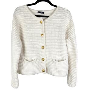 GAP White/Gold Crochet Knit Textured Cardigan Sweater Jacket w/ Pockets - Small
