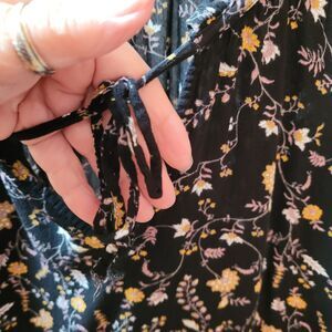 GAP Wnns Boho Black Floral Blouse Long Slv With Front Tie Sz L